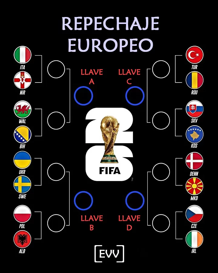 Por su lado, UEFA tendrá su propio repechaje, que dará 4 lugares a disputarse entre las siguientes seleccione: