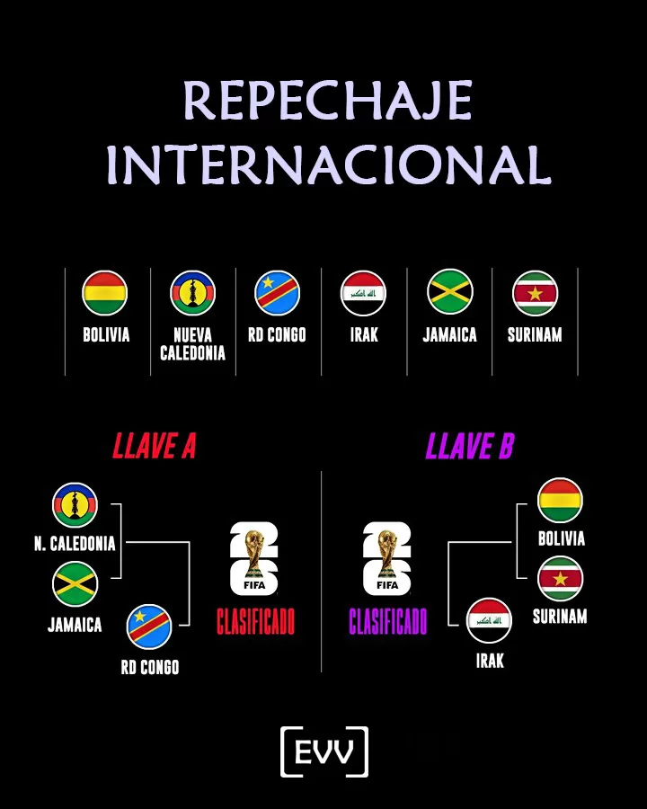 - Seis selecciones entran al repechaje, pero dos de ellas estarán preclasificadas según el ranking FIFA. RD Congo por la llave A, Irak por la llave B.